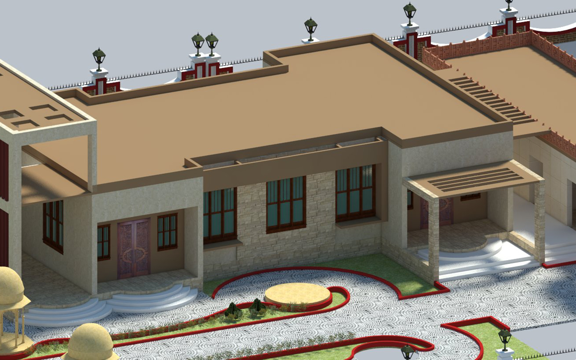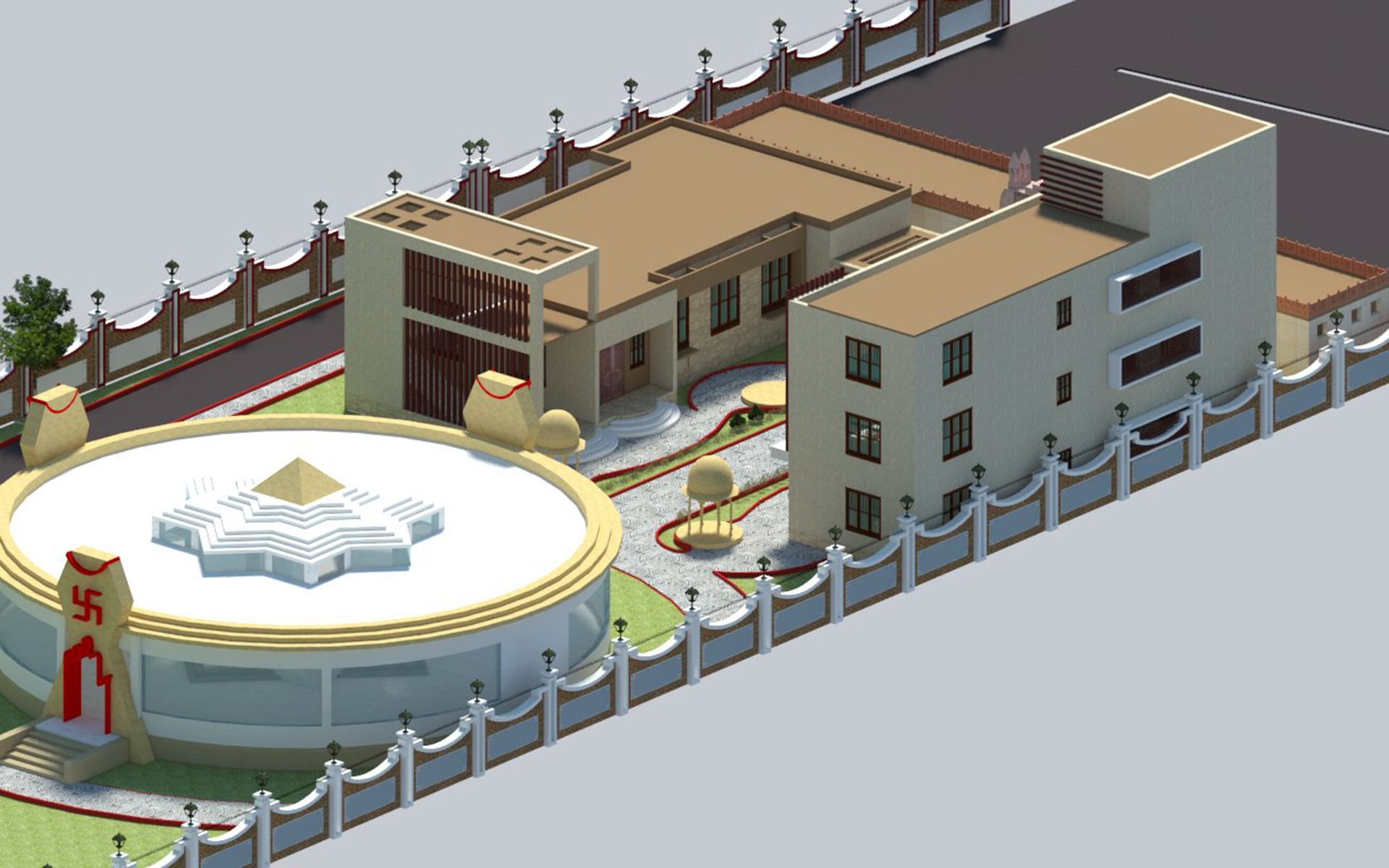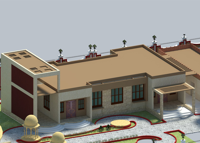 Asthamangal is related to 8 auspicious symbol of Jainism.These are eight symbols Swastika, Shrivasta, Nandhyavarta, Vardhamanaka, Bhadrasana, Kalasha, Minyugala & Darpana. Asthamangal is highly respected by Jains. Asthamangal basically consists of two intersected square overlapped each other & its roof top highest point is 27 feet high from the finished floor level. Its circuma mbulated by wall all around with having main entrance on East & other two entrance on South & North.