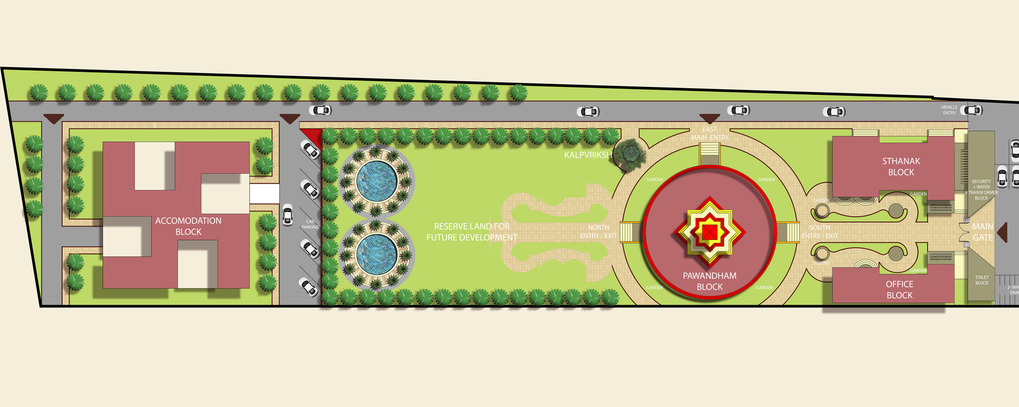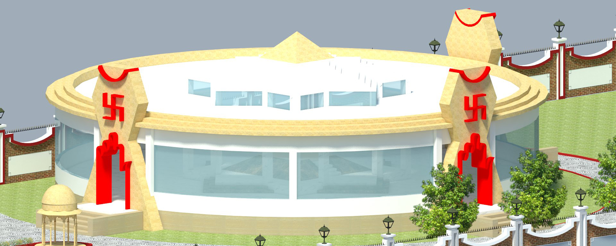 Pawandham will be built upon the cremated heavenly sole of Sadhwi Shri Yash Kanwar Ji Maharaj. The concept is based on “Asthamangal” which will be erected upon the heavenly sole.