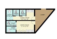 Asthamangal basically consists of two intersected square overlapped each other & its roof top highest point is 27 feet high from the finished floor level. Its circuma mbulated by wall all around with having main entrance on East & other two entrance on South & North. Total building area is 5,153 sft. Total hall inside are aexcluding asthamangal area is about 4,100 sft which can accommodate 500 people comfortably at a time either in Samayik or in standing posture. The form of building is chosen as Circular which represent Unity, Wholeness , Infinity ,Without Beginning or End & it will bring people under this protective symbol. Entrance contains comprehensive Jain symbol consists of a crescent of the moon, three dots, the Swastika or Om, the palm of a hand with the wheel (Chakra) inset, and an out line figure encompassing all symbols. The three dots represent the Jain path of liberation (Jain trinity) : Right Faith (Samyak Darshan), Right Knowledge (Samyak Jnäna), and Right Conduct (Samyak Chäritra), which together lead to liberation These dots also represent the three worlds: the lower region including hells, the upper region including heavens, and the middle region which includes earth. All worldly (non-liberated) souls take birth, live, die, and suffer (pains or pleasures) in these three worlds. The crescent of the moon represents the region known as Moksha This region is beyond the three worlds and it is the permanent place where the liberated souls reside. The Swastika is a sacred symbol in Jainism. The four sides of Swastika symbolize the four forms of existence of the worldly (non-liberated) souls. The four forms are; heavenly beings, human, Tiryanch (which includes animals, birds, and plants), and he llish beings. It reminds us that worldly souls undergo a continuous cycle of birth, suffering, and death in these four forms. Hence one should follow the true religion and be liberated from sufferng.